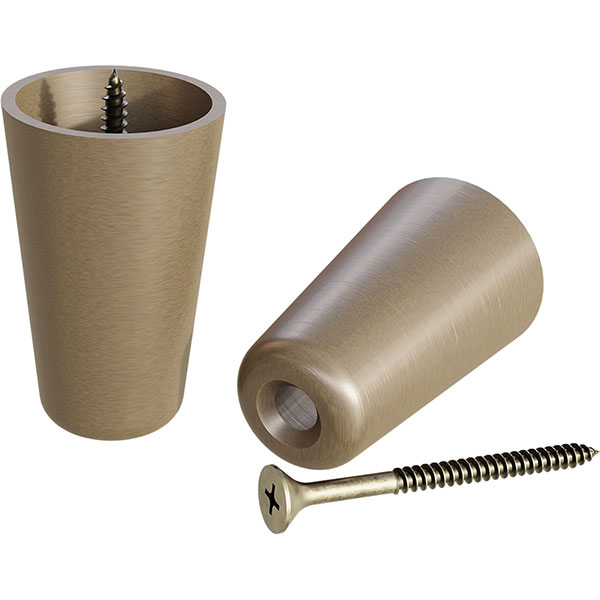 The solid Brass Slipper Cups allow you to add a touch of polished brass to your furniture legs. A standard wood screw is provided with each cup. Securely fit the cup to the furniture legs through the recessed hole at the bottom of the cup. The screw is hidden when fitted.
