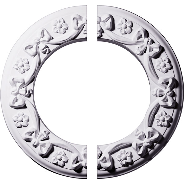 Endurathane Ribbon with Bow Ceiling Medallion, 12 1/4"OD x 7 1/2"ID x 7/8"P (Fits Canopies up to 7 1/2"), Two Piece, Factory Primed