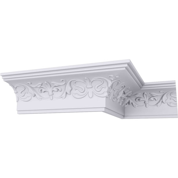 Endurathane Fleur-de-lis Crown Moulding, 3 1/4"H x 3 1/2"P x 4 5/8"F x 94 1/2"L, Factory Primed