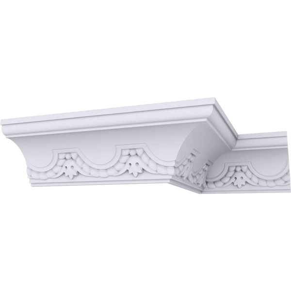 Endurathane Lunel Crown Moulding, 3 1/2"H x 3 3/8"P x 4 7/8"F x 94 1/2"L, (3 7/8" Repeat), Factory Primed