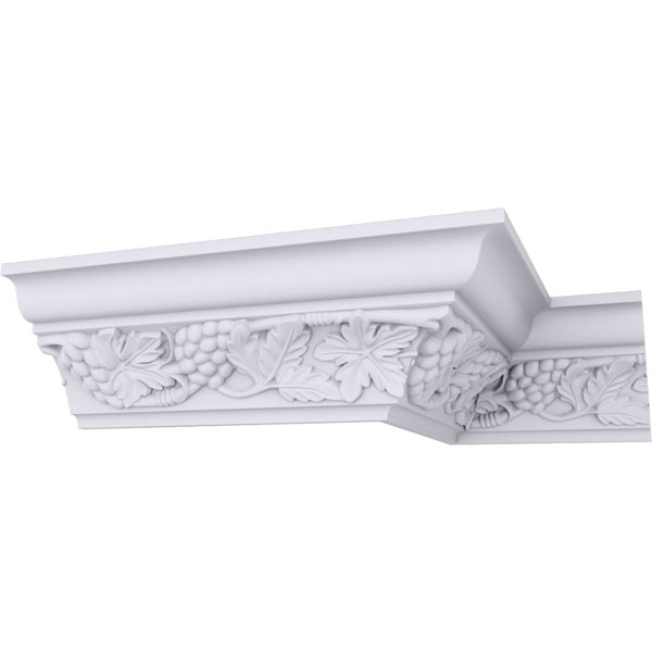 Endurathane Grape Bunch Crown Moulding, 3 7/8"H x 3 7/8"P x 5 1/2"F x 94 1/2"L, (10 5/8" Repeat), Factory Primed