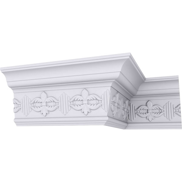 Endurathane Victorian Crown Moulding, 5 1/8"H x 3 1/8"P x 5 7/8"F x 94 1/2"L, (4" Repeat), Factory Primed