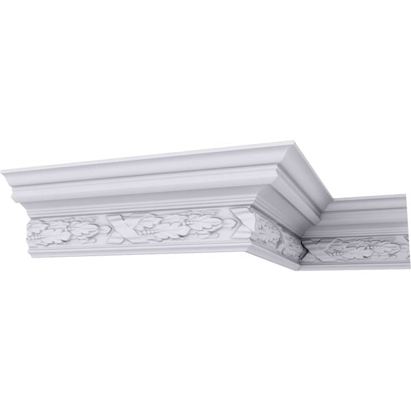 Endurathane Dublin Crown Moulding, 7 1/4"H x 5 3/8"P x 8 5/8"F x 94 1/2"L, (9 5/8" Repeat), Factory Primed