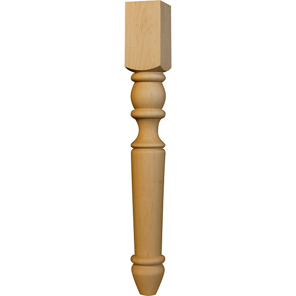 Named for the old English city of Portsmouth, the Portsmouth End Table Leg features broad expanses between turnings and a straight taper, ending in a simple bun foot. Like the city, this powerfully designed leg is made to stand the test of time, and one look will confirm this. It is 21" tall and 2 1/2" wide, making it a perfect addition to an end table, nightstand or side table build. Choose from multiple unfinished wood species and customize this leg to fit into your decor seamlessly. This profile is also available in an 18" height (the Portsmouth Coffee Table Leg, Part #1304) as well as several sizes of island legs. Pair any of these together to complete your look!