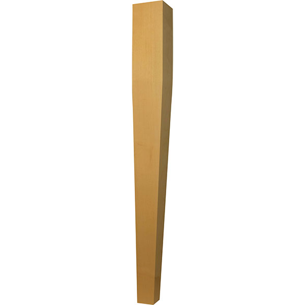 The Tapered (2-Sided) Kitchen Island Leg has a very popular profile that complements modern design but is also versatile due to its simplicity. It has clean vertical lines but features an elegant tapering on two adjacent sides of the leg. It is 34 1/2" tall with a width of 3 1/2". It has an 8" top square which allows for easy attachment to a custom table base or drawer design. Typically, this leg is installed so that the tapers are on the inside leaving clean straight lines from the countertop down. The design works well with any type of countertop from granite to stainless steel. It is not overwhelming and will complement decor rather than take away from it. With the ability to choose from several wood types, there are endless possibilities with this leg.