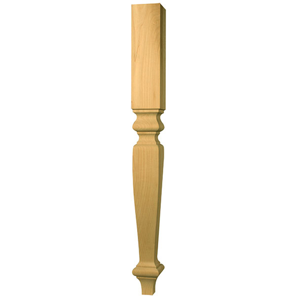 Impress your family, friends, and guests with a stunning new kitchen design. Discover the delightful combination of country design and modern style with the English Country Island Leg! This piece exhibits flawless craftsmanship and will be right at home in anything from a rustic to a contemporary space. The square turned profile is 34 1/2" tall and 3 1/2" wide. It has a 12 1/4" top block which is useful for attaching table aprons, drawers and shelving. Below that are interesting beads and flats with a bun-like foot at the base. Whether updating your current kitchen space or creating a whole new island from scratch, this leg is a perfect option and it can easily be customized to complement your personal style. Choose from a wide range of wood species and finish the piece with the color of wood stain or paint most suitable to your design. The leg will be sanded to a 150 grit smooth surface to make finishing easy.