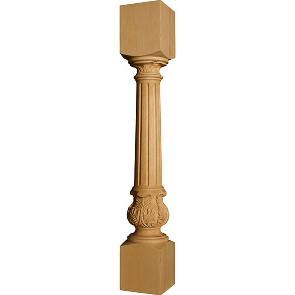 The fluted detailing of this island leg is accentuated by the delicate and beautiful hand carved acanthus leaf ends. The leaf detail falls just before the top and bottom blocks, also adding a contrast to the intricate design. Delicate, yet understated, this design adds a touch of elegance without a bulky feel.