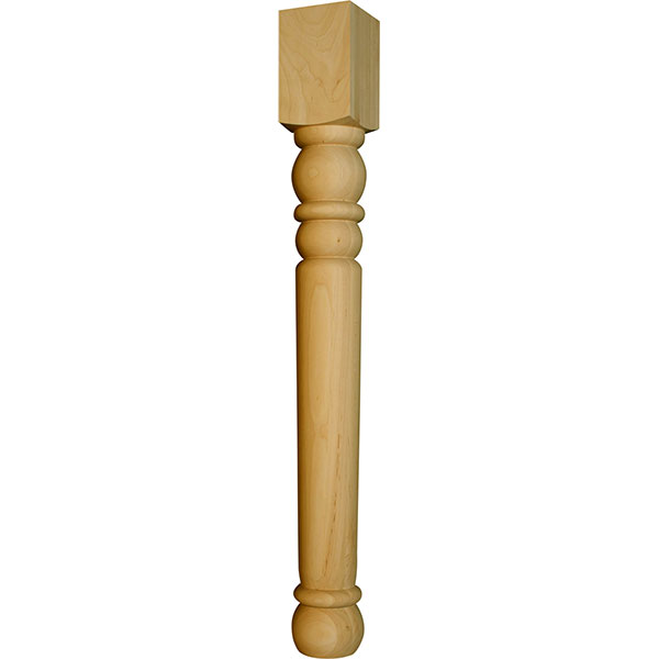 A stunning and versatile piece, the Husky Arlington Island Leg may be exactly what your kitchen design has been missing. This beautiful design has a simplistic beauty that will give your space an elegant uplift. It begins with a square top block, perfect for incorporating table bases or drawers into your project. Below that block, the profile boasts turned rings and satisfying spheres that lead into a simple center and ends with a round bun foot. At 35 1/2" tall and 4" wide, you can't go wrong choosing this durable component for your kitchen project! This wooden island leg is offered in a wide range of unfinished wood species allowing for unlimited customization possibilities. Whether you want to apply a dark stain or a unique color to the leg, you can select the paint or stain grade wood type most suitable for your project. The leg will be sanded to 150 grit, making finishing easy. If you like this design but are in need of something shorter, we also offer the Husky Arlington Island Post (Part #1491) at a 34 1/2" height and the same 4" width.