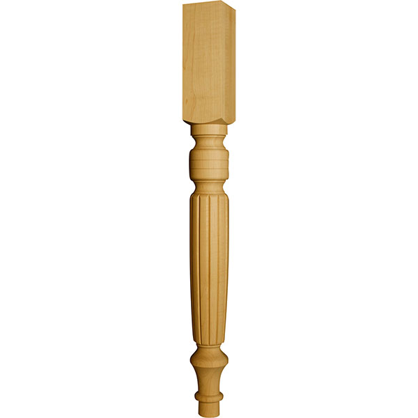 The Old World Island Leg is a perfect wooden island leg for an antique or classic-style kitchen. The Old World design reflects the craftsmanship of the Colonial era, focusing on quality and beauty. Many family heirlooms feature similar styling, as furniture piece is passed down from generation to generation. This 35 1/2" tall and 3 1/2" wide leg is durable enough to become a new family tradition. The design boasts a stunning reeded center with triple banding that gives it a more formal look. There is a useful 10 1/2" top block which can attach to table skirts, drawers and even cabinetry. The turned foot at the base add to the elegance of the piece. Although this is a classic design, it can be customized to fit in with a more modern space. Depending on the wood species selected, you can paint or stain the exterior of the piece any color you wish. It will be sanded to 150 grit to allow for easy finishing. If you would like to create a complementary set, we also offer the Old World Dining Table Leg (Part #1122) which is the same profile in a 29" height.