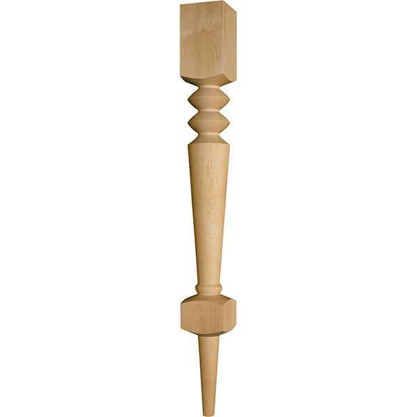 The Abaco Island Post is a striking piece of taller turned work. Beginning with a square block, the leg moves downward with two stylized turnings that are reminiscent of spinning wooden tops. The shaft of the leg follows: a tightly tapered cylinder that reflects the shape of the tops above. The tapered shaft is interrupted by a shallow cube shape before finishing with a dramatic stiletto taper.