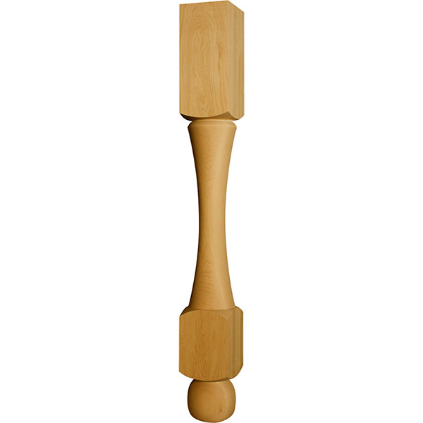 The Cumberland Island leg has a slender look in spite of being turned from 4 inch stock. The center hourglass draws attention to the large stretcher block and bun foot. The square block on the bottom allows for easy installation of a shelve on your kitchen island.