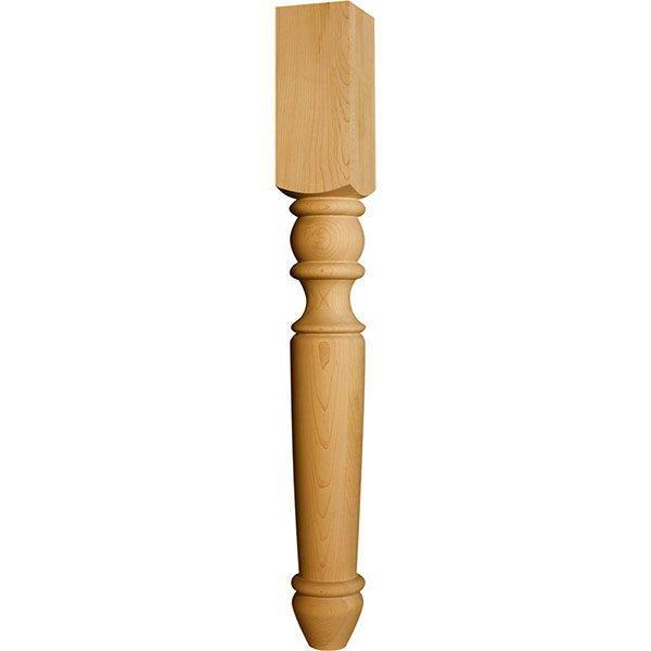 The Portsmouth Island Post is a sturdy leg with a dramatic concave that distinguishes the piece from other leg designs. It has a subtle coastal feel that accommodates a wide range of designs. The simple yet durable leg is 4" wide and 34 1/2" tall. Whether you are using it for a small dining nook or as support on a formal dining table, this leg will provide the perfect amount of detail for your space. Its extended 9 1/2" top block allows for longer table apron designs, shelving and drawers. This design is one of our most popular and it is offered in many variations. You can pair this island post with the Portsmouth Dining Table Leg (Part #1114) to create a stunning complementary set. Both of these are available in a wide range of wood species and can be customized to your preference. They are sanded to 150 grit and ready to be finished with your choice of wood stain or paint.